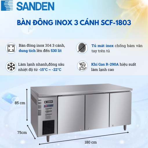 3. THÔNG SỐ KỸ THUẬT BÀN ĐÔNG INOX SANDEN SCF-1803